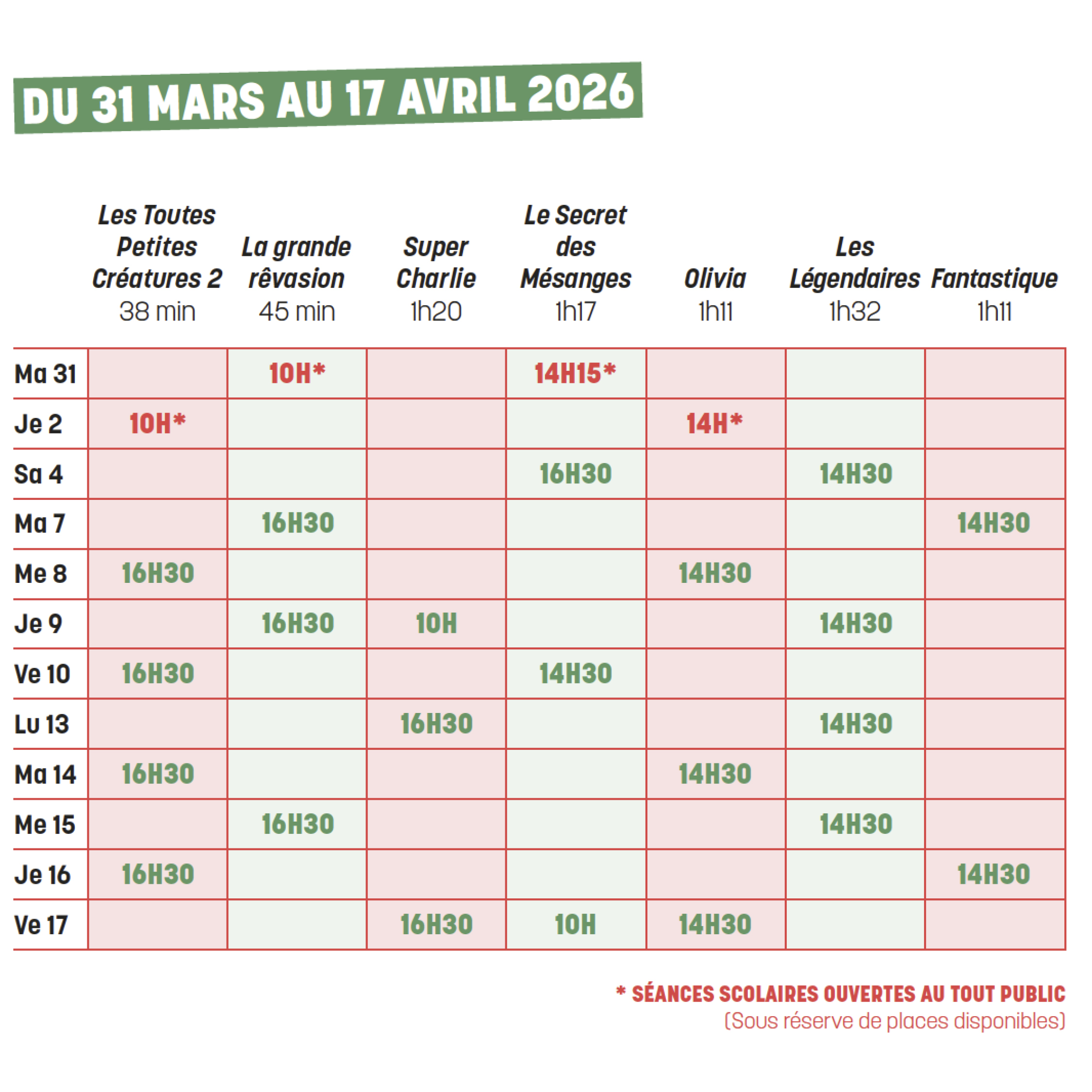LES FILMS DU CYCLE CINÉMA D'AVRIL