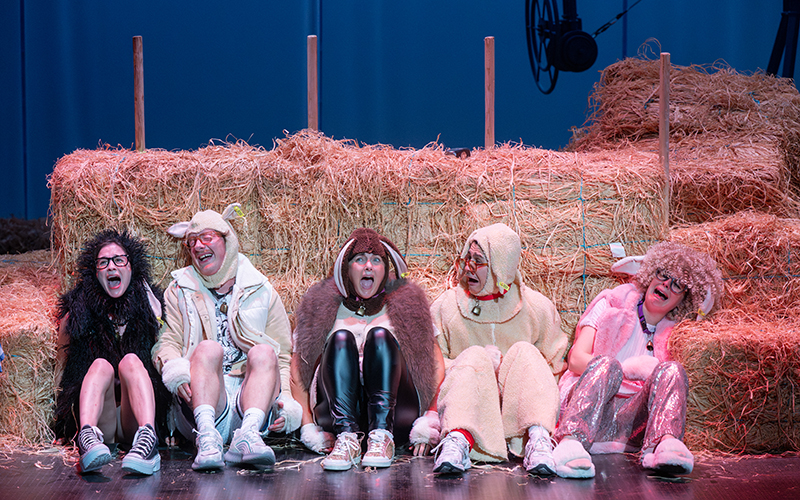 Au fil du temps, sa famille et ses animaux sont devenus totalement « hors normes » : des moutons causeurs et des pitbulls qui les déchiquètent, un fantôme, un loup et la mère qui fume jours et nuits dans l’espoir de se consumer… L’invraisemblance des multiples situations engendre à la fois de l’émotion et des attitudes cocasses. Les sept comédiennes et comédiens (dont Cristiana Reali) dessinent une France aux abois qui se frotte avec ambivalence aux turpitudes du siècle ! Chargée de problématiques environnementales et sociétales, la campagne s’invite au théâtre, sous la plume et la patte déjantée de Pierre Guillois.